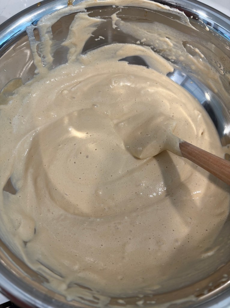 Note: This did not happen to me, but apparently you may get curdling during the butter adding process. This is normal and is supposed to resolve itself once you add all of the butter. Make sure you give enough time between steps for everything to be at room temp.
