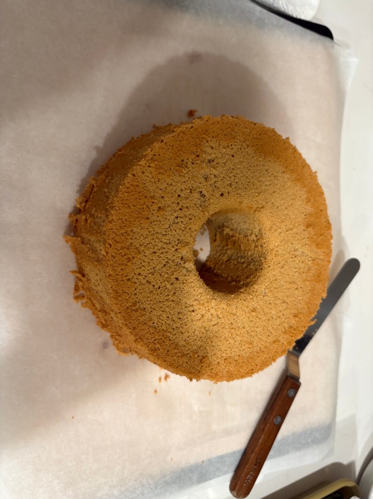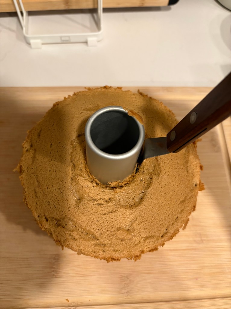 I chose chiffon cake, selfishly, to be honest. Earlier this summer, I had finally bought the chiffon cake pan I’d been eyeing for some time, and wanted to continue practicing baking them. My parents are also partial to lighter, fluffier sponges and are incredibly sweetness averse, so I wanted to avoid denser, buttery cakes. Chiffon’s lightness was perfect for their preferences.