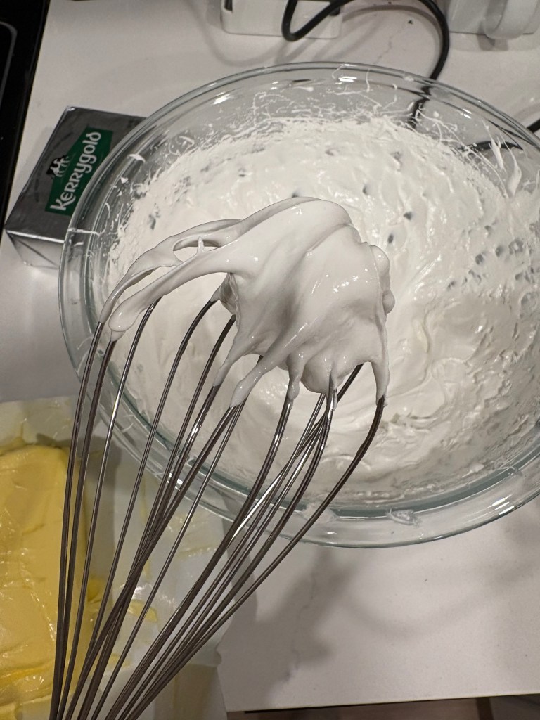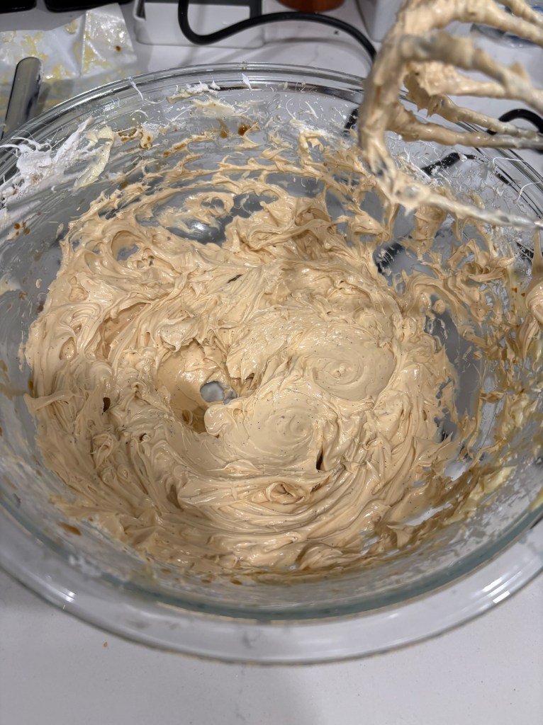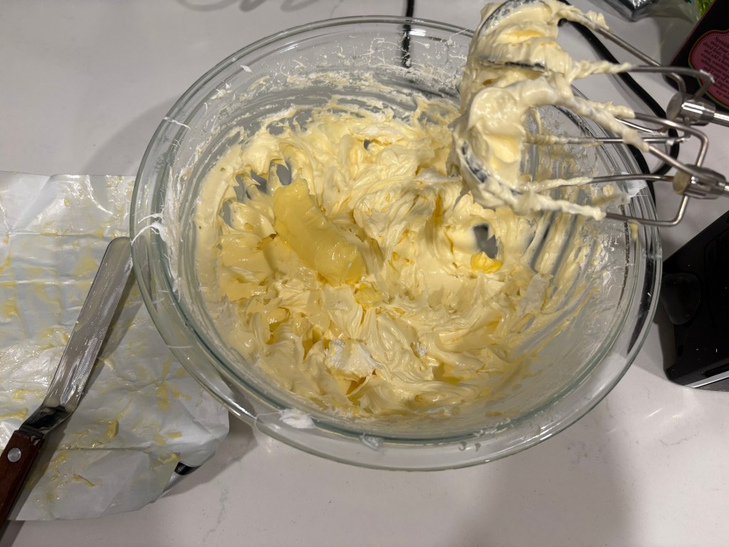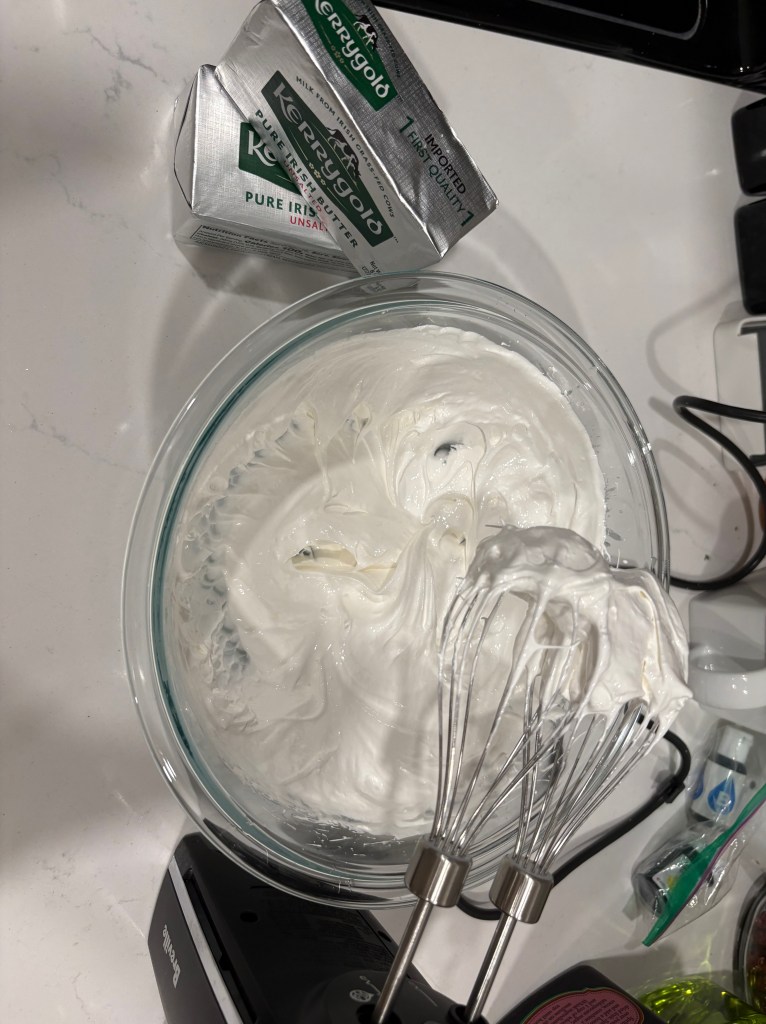 Swiss meringue buttercream is actually very popular on Instagram and it is incredibly easy to find video shorts of people making this. The recipe I followed however was Claire Saffitz’s Dessert Person video. (She also does Italian meringue in this too.) While I mostly followed her Swiss meringue tutorial, I made a couple changes to better suit my purposes: